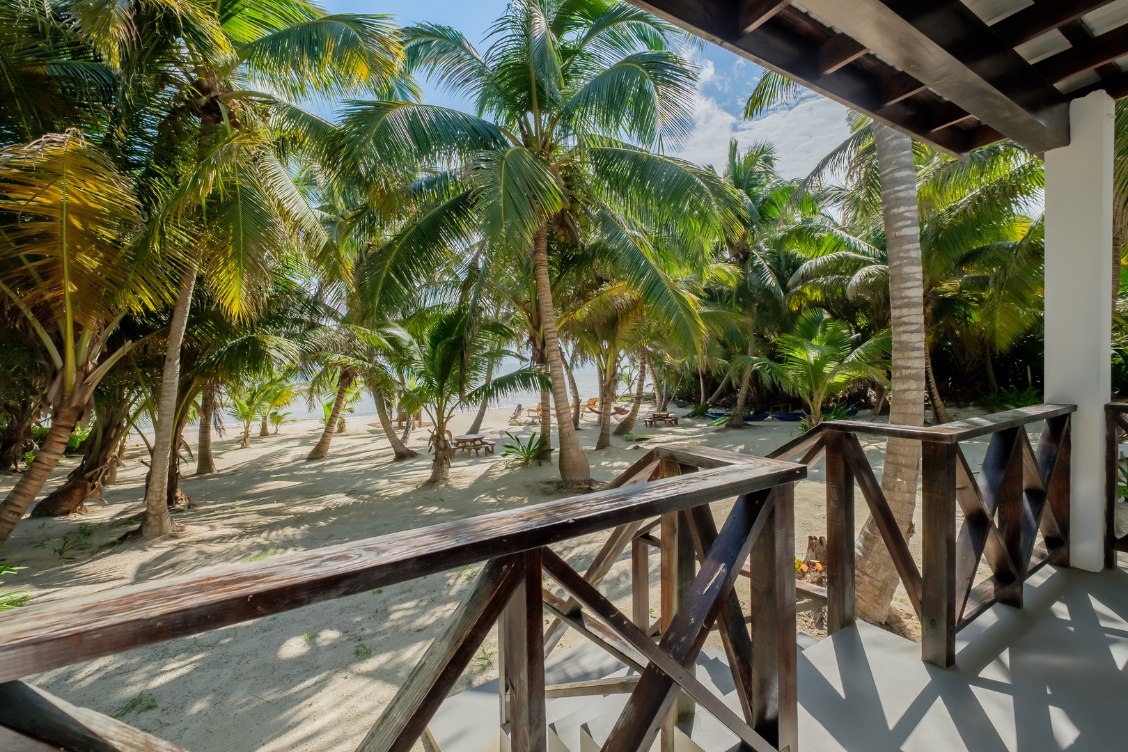 Guests have full access to their rooms and verandas. Shared space includes the grounds, picnic tables, and the beach. Laundry service is available for a small fee